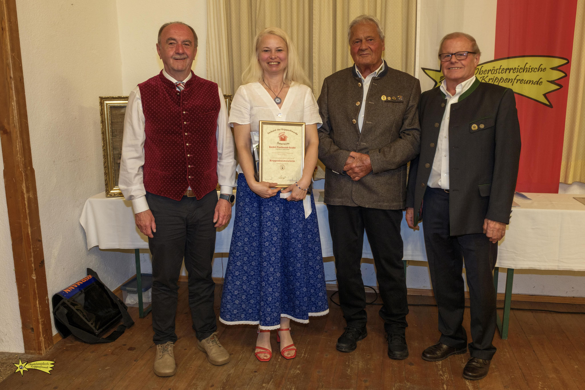 Karin Winklmeier ist die neueste Krippenbaumeisterin in unserem Verein und drei weitere Schüler zur Ausbildung in Geboltskirchen