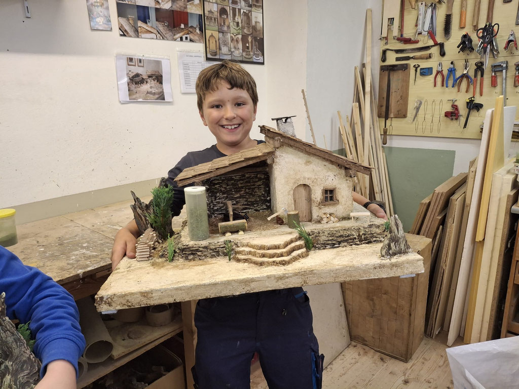 Unser Obmann, Franz Schallmoser, und Josef Kamerstetter haben sechs Nachwuchskrippenbauer in die hohe Kunst des Krippenbauens eingeführt.